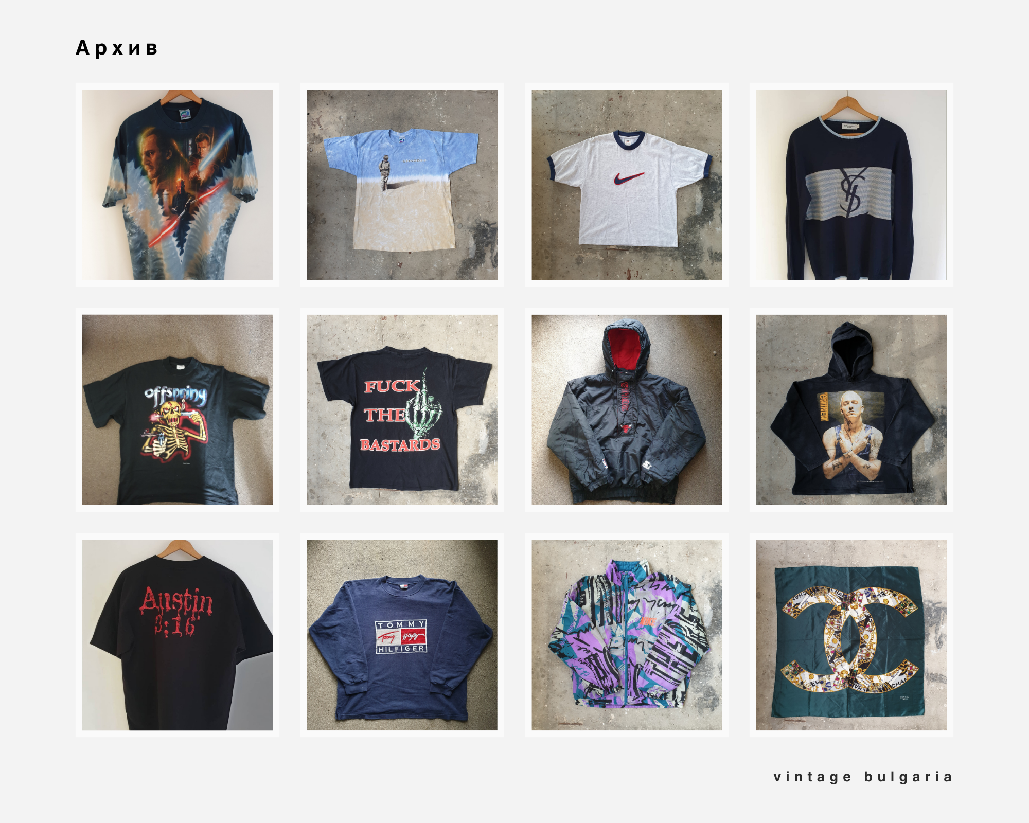 Магазина се фокусира главно върху sportswear и luxury марки от 90-те и 00-те и предлага както супер бюджетни попадения така и по-редки и скъпи находки.